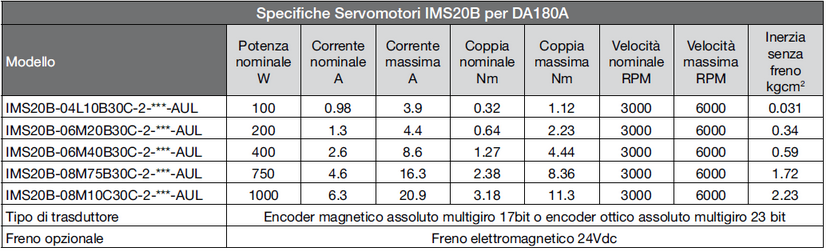 DA180A è un VERO servosistema brushless con elevate prestazioni (banda passante di 2.5kHz), posizionatore integrato e svariate possibilità di controllo (treno di impulsi, analogica, Modbus RS485, CANopen e EtherCAT