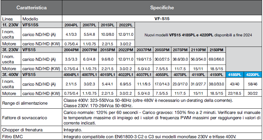 - Filtro EMC C2/C3 integrato